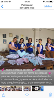 Foram confeccionadas pelas senhoras de rotarianos, almofadinhas lindas em forma de coração, para serem entregues a mulheres em tratamento contra o câncer, servindo de apoio para elas no momento da quimioterapia.